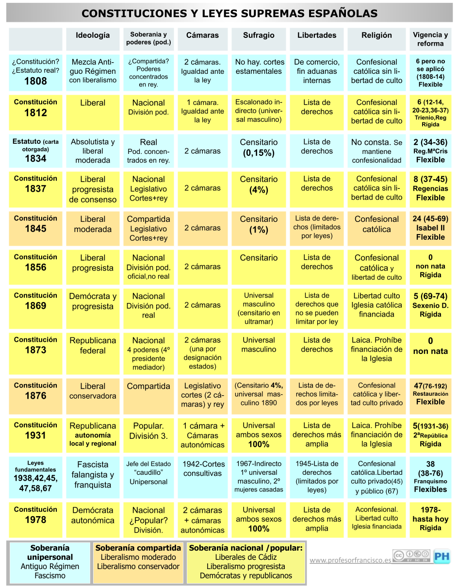 Comentario de texto: Abolición de los señoríos Cuadro de constituciones españolas |
